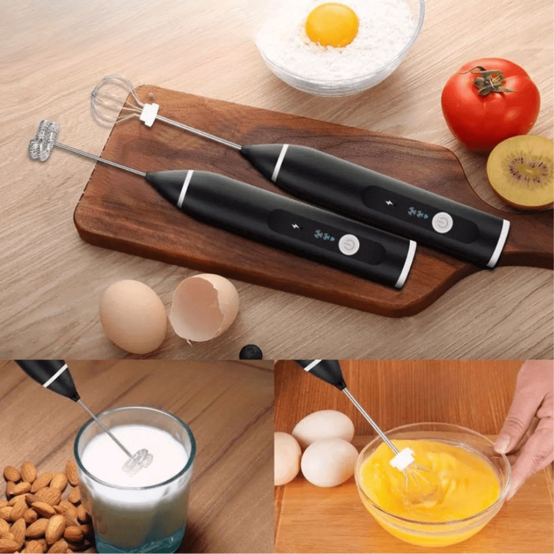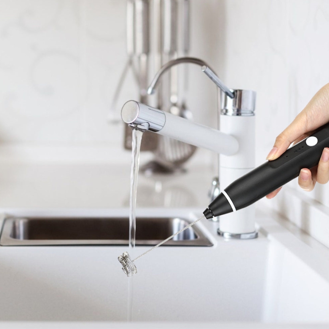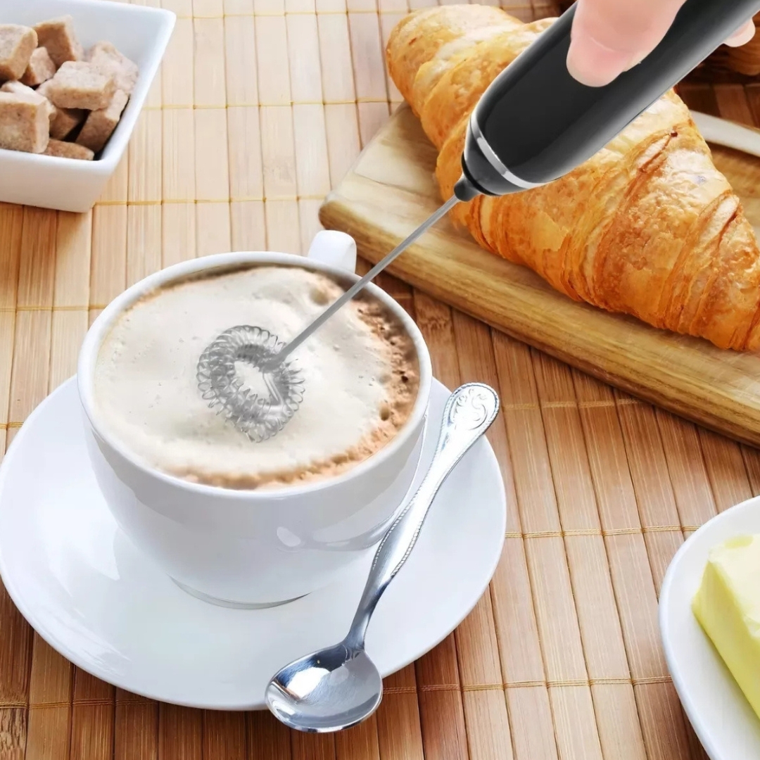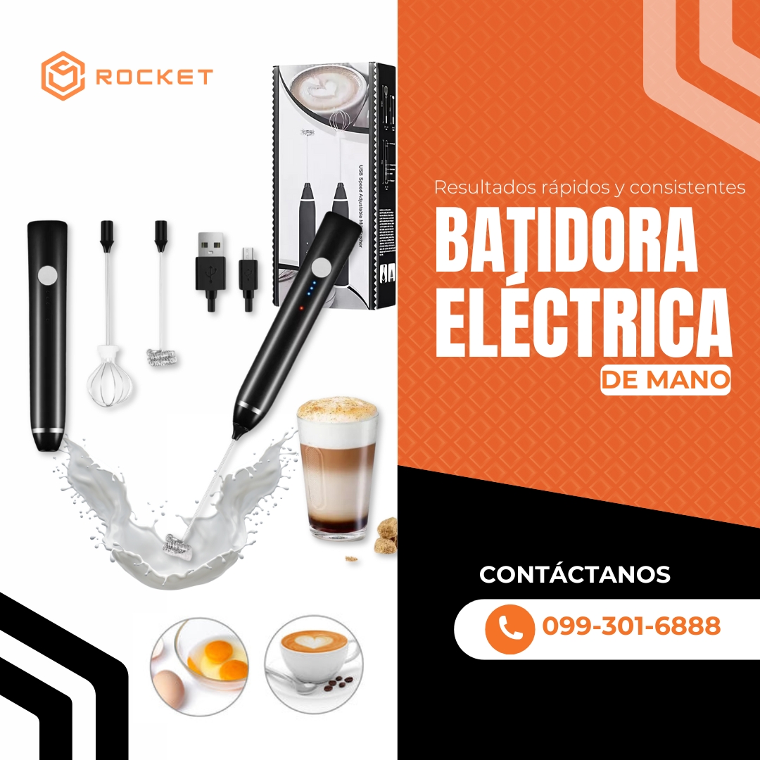 Diseño: Mini batidor eléctrico con mango ergonómico y fácil agarre.