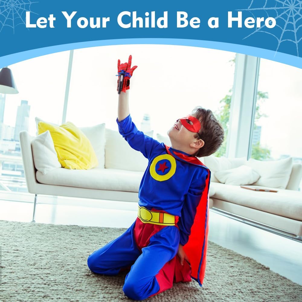 Imitación de héroe: juego de tirador de telaraña para niños para una experiencia realista emoción de escupir seda y agarrar. Fácil y divertido de jugar, deja que los niños se conviertan en pequeños héroes geniales. Cuando se lo ponen, pueden imitar la escena de las telarañas filmando como el Hombre Araña en las películas, lo que permite a los niños imaginarse a sí mismos como superhéroes