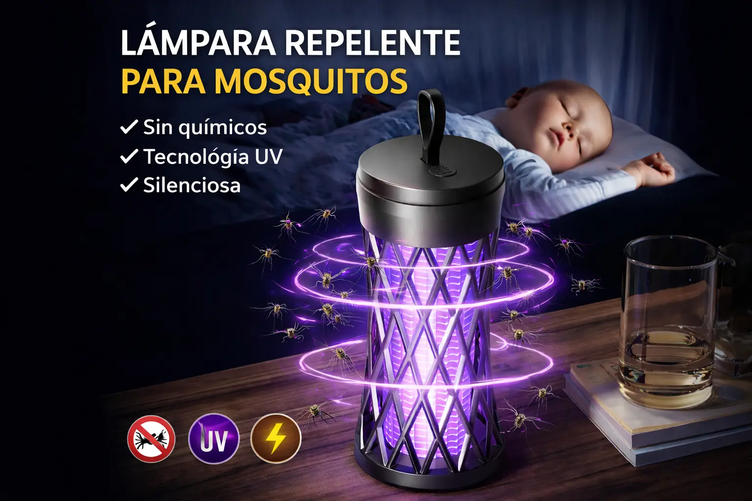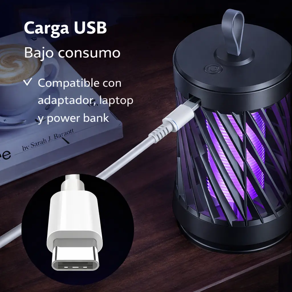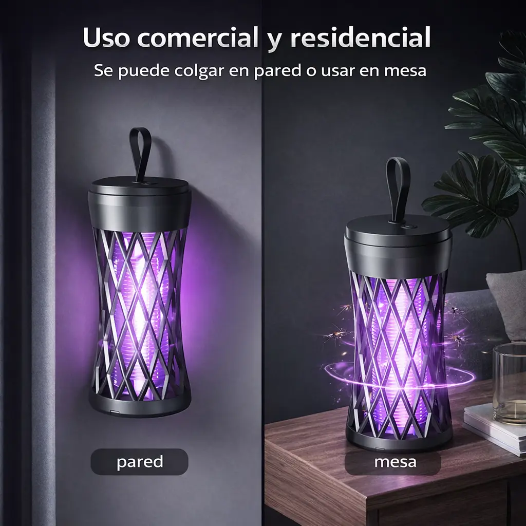 La lámpara atrae los mosquitos mediante luz ultravioleta y los elimina de forma segura, ayudando a mantener espacios libres de insectos molestos mientras duermes, trabajas o descansas sin ruidos ni químicos.