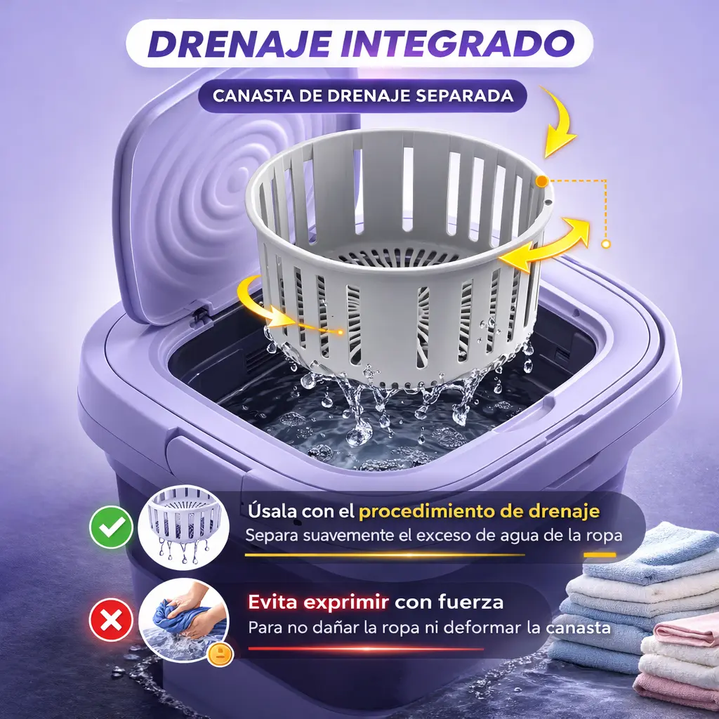 Con esta lavadora portátil podrás mantener tu ropa limpia sin complicaciones, incluso en lugares donde una lavadora tradicional no es posible. Una solución práctica que simplifica tu vida diaria.