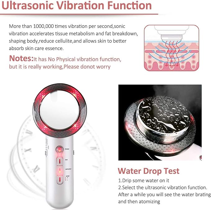 Ultrasonido: El ultrasonido de este dispositivo de pérdida de grasa puede promover la circulación sanguínea y acelerar la quema de grasa corporal. Ayuda a eliminar el exceso de grasa corporal y a mantener una figura esbelta.