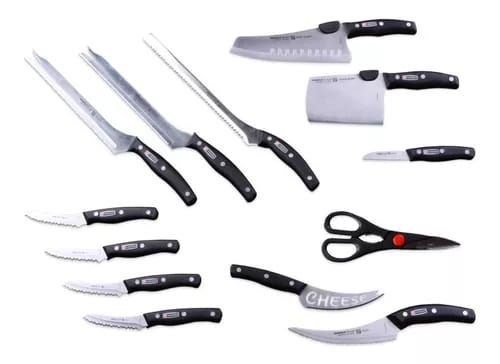 Multifuncional: el filete de 13 piezas funciona bien para cortar y tallar carne, pavo, pizza, jamón, pechuga, pescado, verduras, frutas, especialmente para carne de res y bistec.