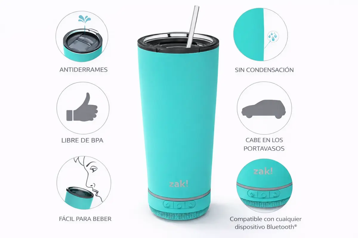 El Vaso Parlante Bluetooth te permite disfrutar tu bebida favorita mientras escuchas música, sin necesidad de usar parlantes externos.