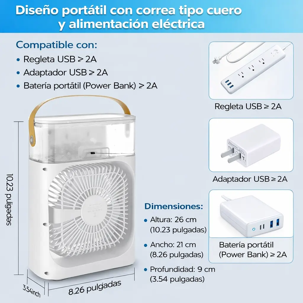 Imagina sentir un aire fresco, limpio y agradable mientras trabajas o descansas. Este ventilador enfriador te brinda confort, alivio y bienestar, mejorando tu día incluso en los momentos más calurosos.